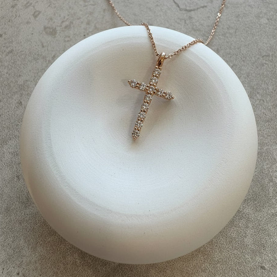Seeking to remind those around of the power of the cross, this pendant features a design that is both simple and elegant. It touches and radiates light in every direction and towards all who are in its presence.
