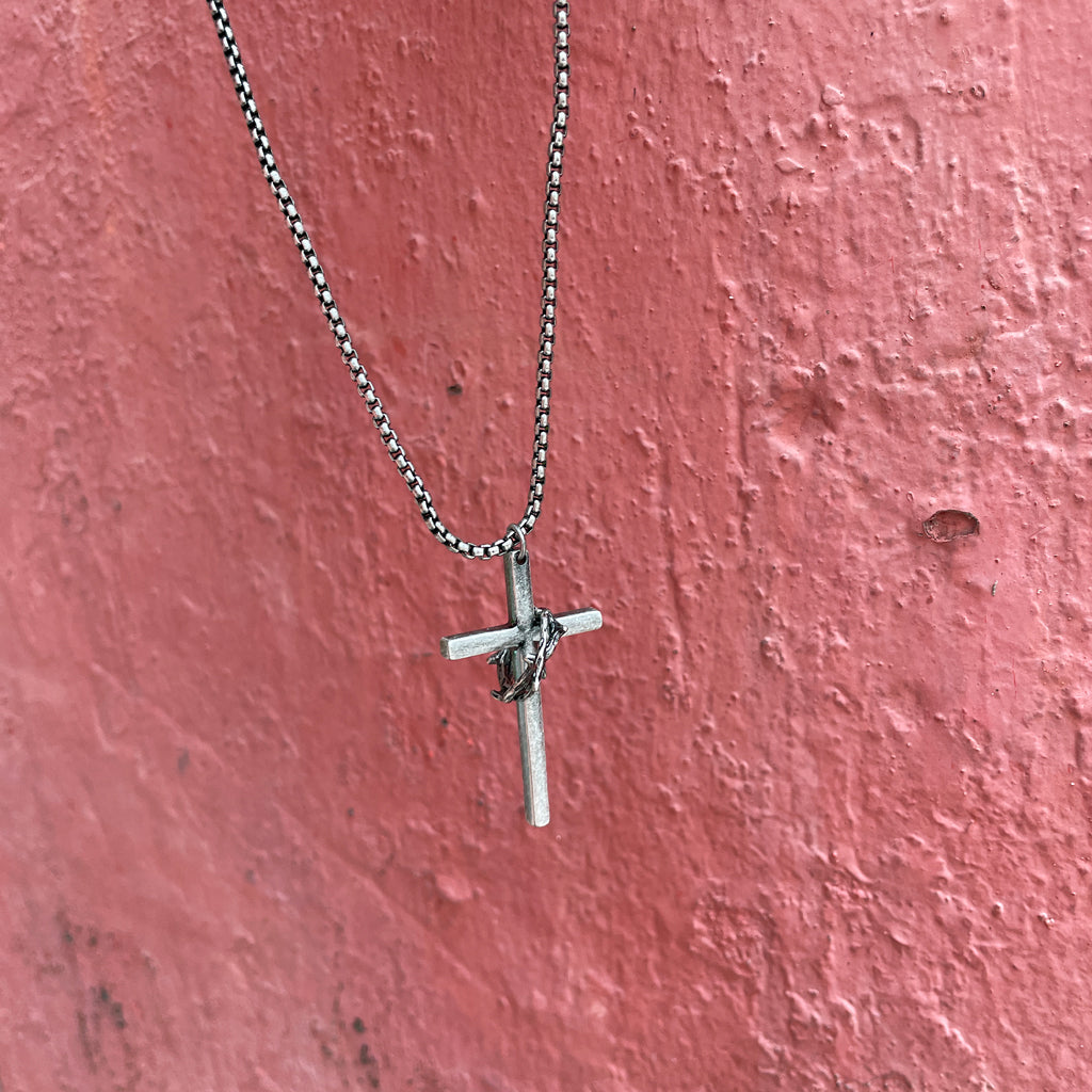 The cross and crown of thorns are symbolic of Jesus' death and resurrection at Calvary. They are reminders that our Saviour conquered death and redeemed us through His blood.
