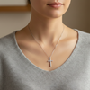 Seeking to remind those around of the power of the cross, this pendant features a design that is both simple and elegant. It touches and radiates light in every direction and towards all who are in its presence.