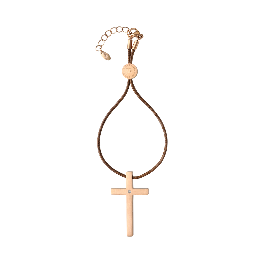 This limited edition car cross is featured in 18k rose gold plating and embellished with a Swarovski crystal.